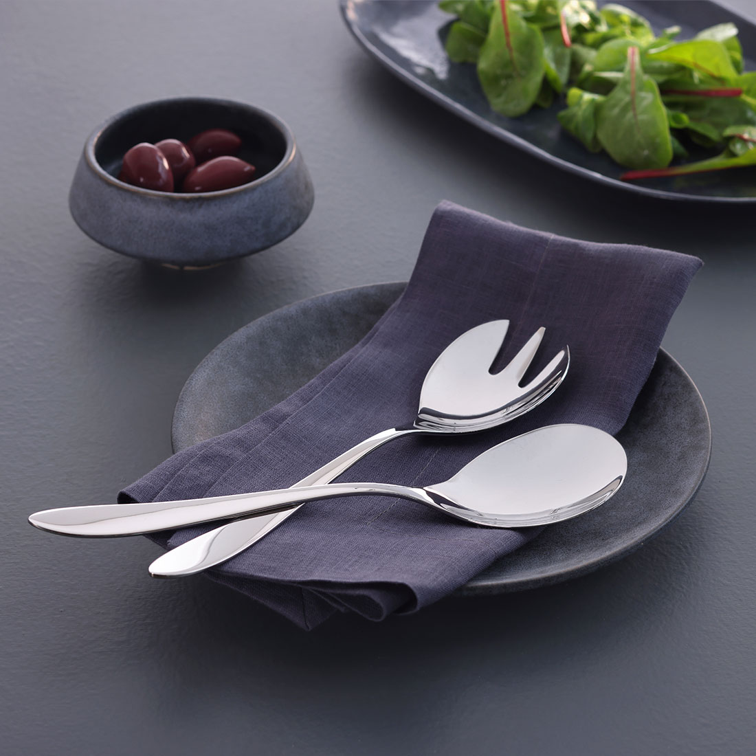 • Inneholder en serveringskje L: 22,2 cm og en salatgaffel L: 22,2 cm
