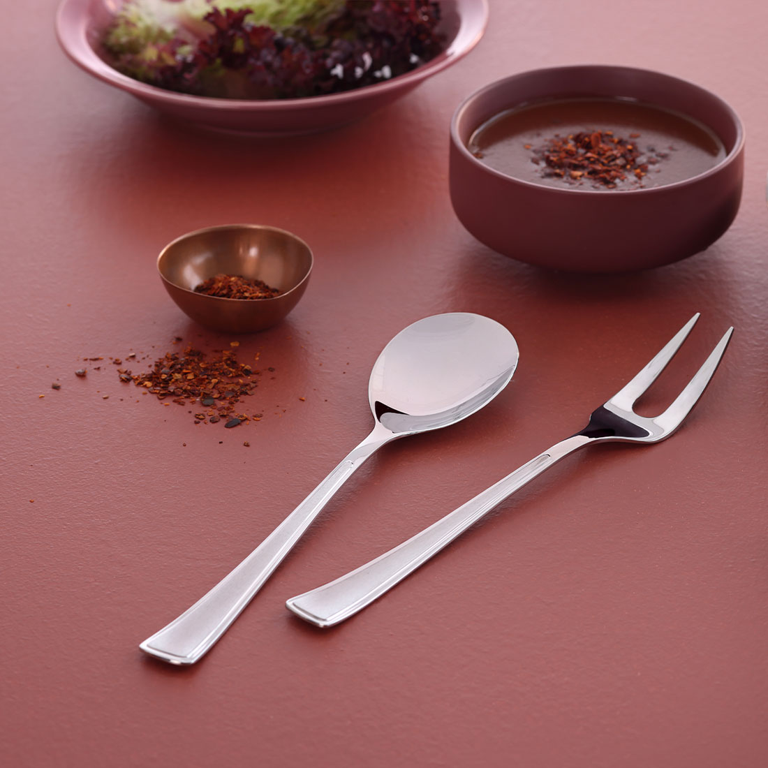 • Inneholder en serveringsskje L: 22,5 cm og en serveringsgaffel L: 22,4 cm